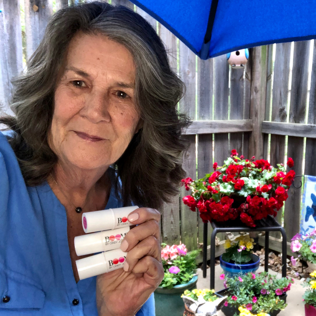 Jan uses Boomstick Glo for moisturizing around her nose, eyes and mouth—all the places on her face that tend to dry out during the day.