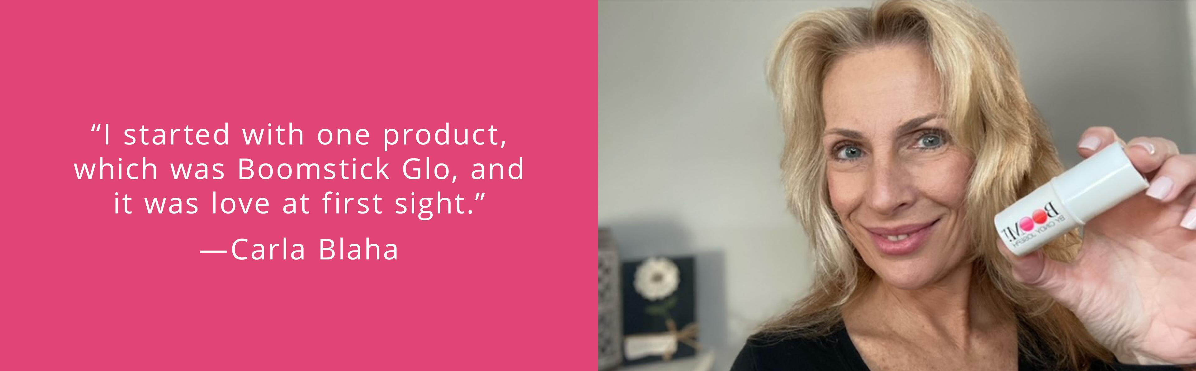 “When I started,” she says, “I started with one product, which was Boomstick Glo, and it was love at first sight.”
