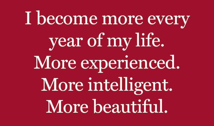 "Although I don't believe I ever act my age, being pro-age, to me, means embracing life at every age."