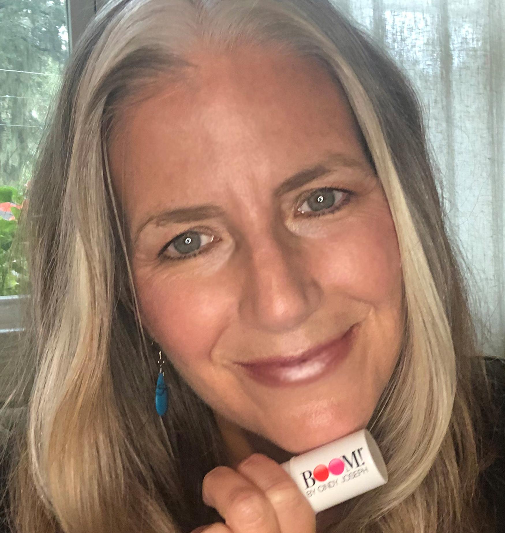 “I wasn’t entirely sure that the Boom skin-care line would have anything for someone like me,” she says. “Unlike a lot of older women, I do not struggle with dry skin—I struggle with oily skin. But let me tell you, I’ve been pleasantly surprised.”