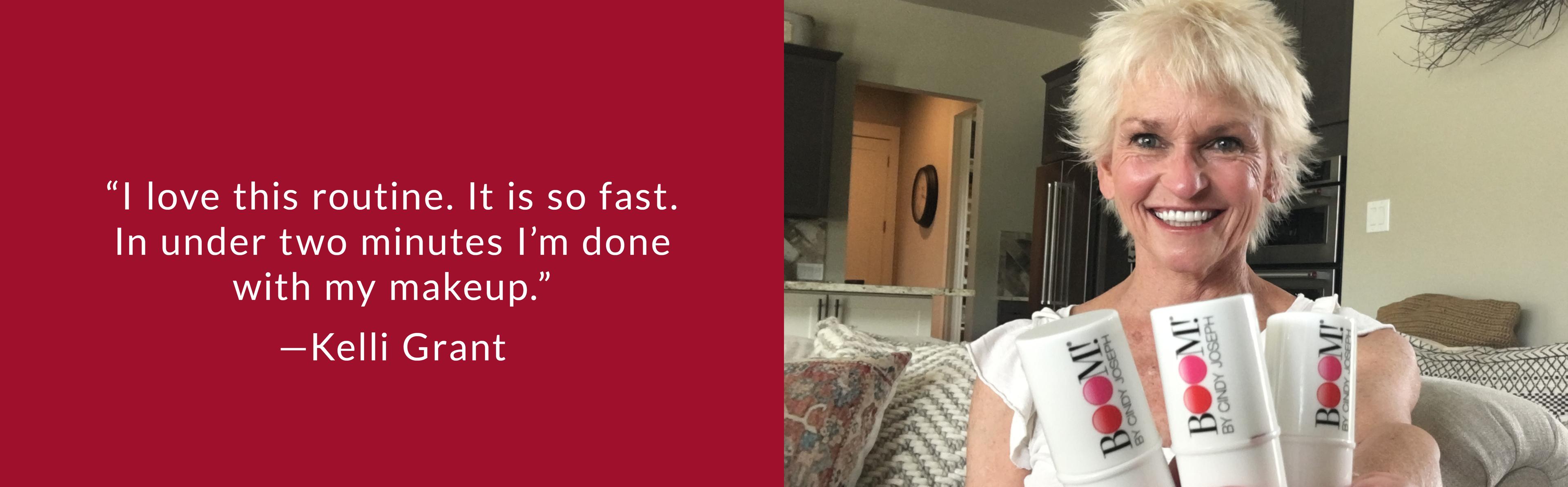 “I love this routine,” Kelli says. “It is so fast. In under two minutes, I'm done with my makeup.”