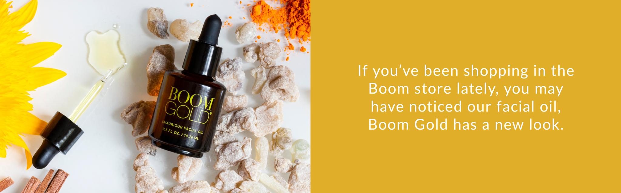 If you’ve been shopping in the Boom store lately, you may have noticed our facial oil, Boom Gold, has a new look.