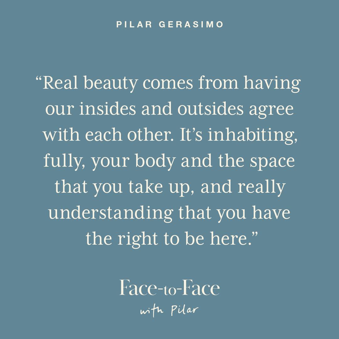 Real beauty comes from having your insides and your outsides agree with each other. It’s inhabiting, fully, your body and your face and the space that you take up, and really understanding that you have a right to be here and you have gifts to give. And it’s in the expression of that that we really shine at our brightest.