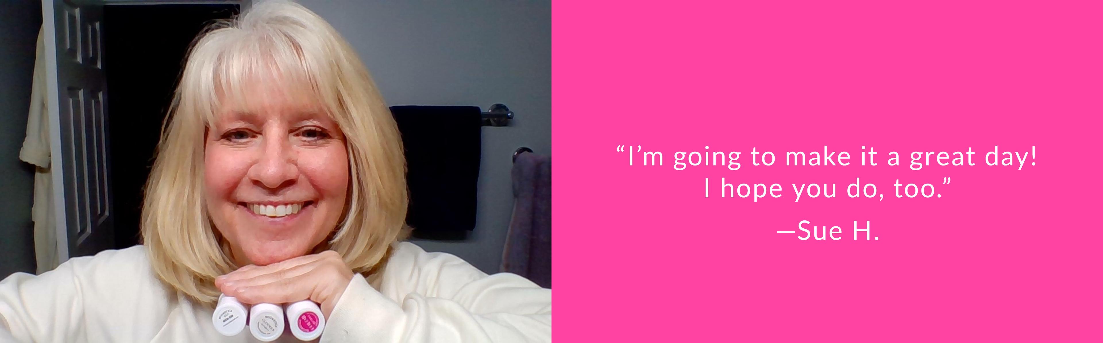 With that last step, Sue is ready for anything. She finishes, “I’m going to make it a great day! I hope you do, too.”