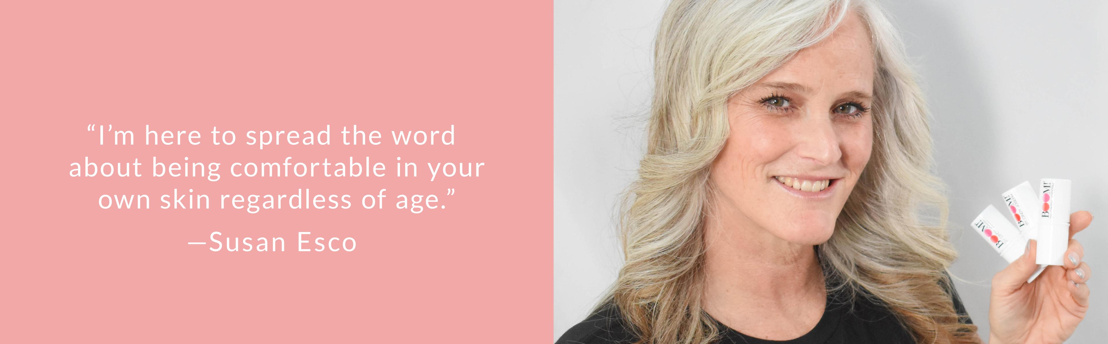Susan loves BOOM! because of our pro-age philosophy. She also appreciates how easy and quick Boom cosmetics are to use.